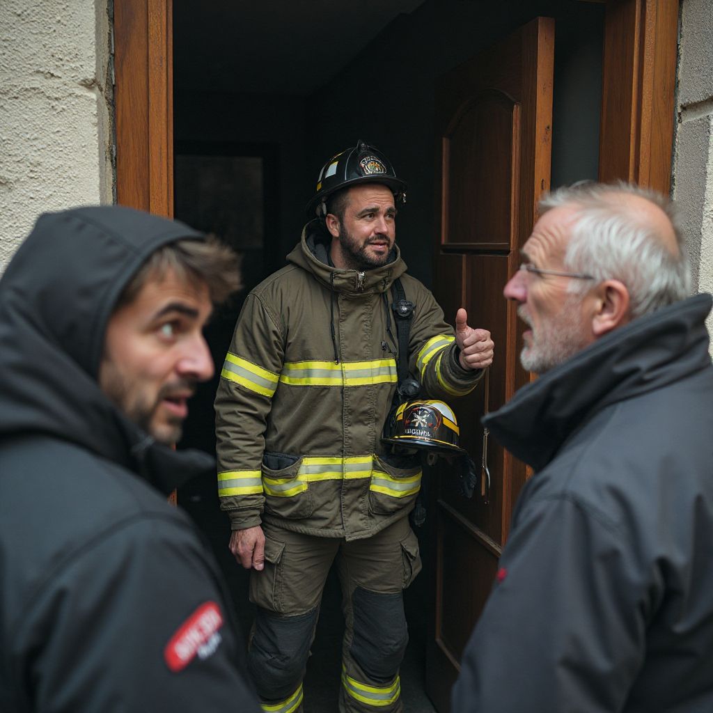 Он стоял у входа, не сняв шлема, и форма пожарного сидела на нём не как маска, а как вторая кожа. Рост выше среднего, плечи шире воротника, загрубевшие руки, шрамы на пальцах — всё говорило о работе, где нельзя позволять себе слабость. Его ботинки были чисты, но потерты, шеврон приглушённо блёк от сотен вызовов; в уголках глаз — тёмные тени бессонных смен. Он думал о рутинном обходе, о просьбе дежурного проверить электропроводку у соседей, но в голове крутились и чужие имена, и собственная усталость, и привкус сожаления.