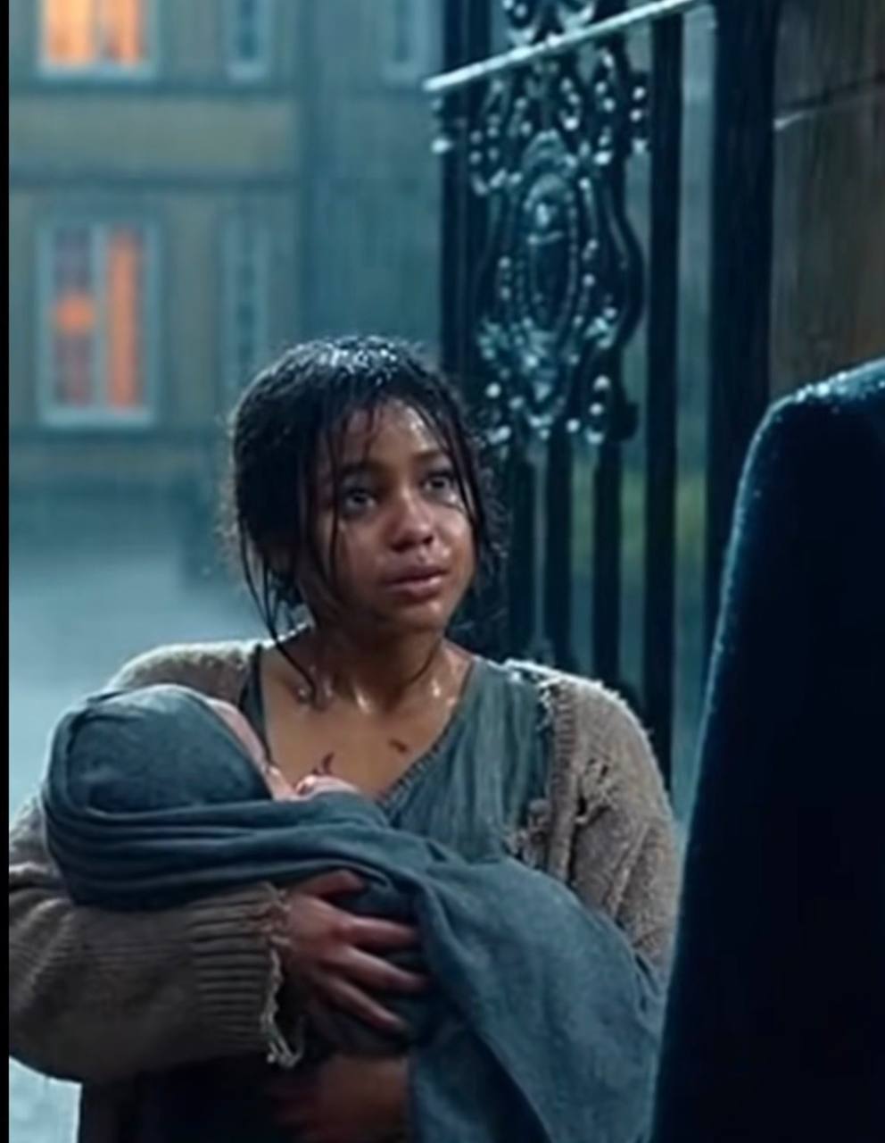 В этот момент к нему бросилась хрупкая фигура. Девушка лет шестнадцати, насквозь промокшая, прижимала к груди сверток из старой ткани.